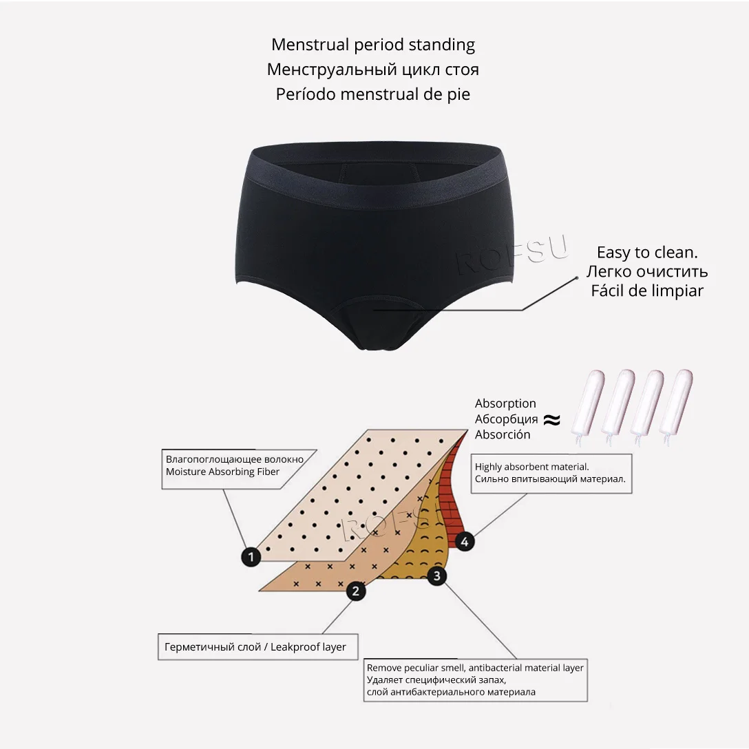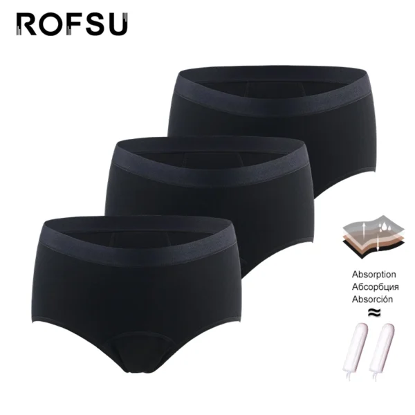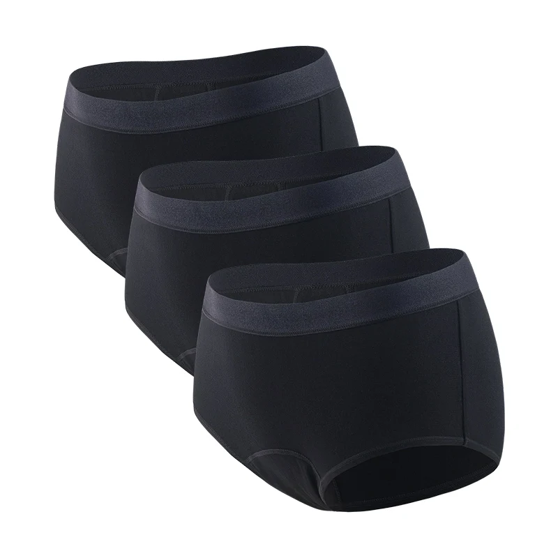Lot de 3 culottes menstruelles pour femmes, en viscose, bambou et coton, 4 couches absorbantes et anti-fuites. Lingerie féminine.