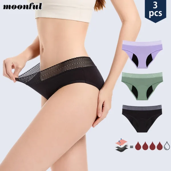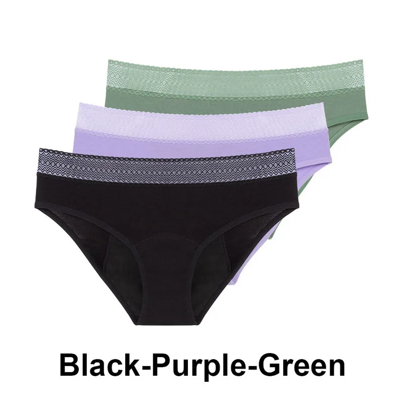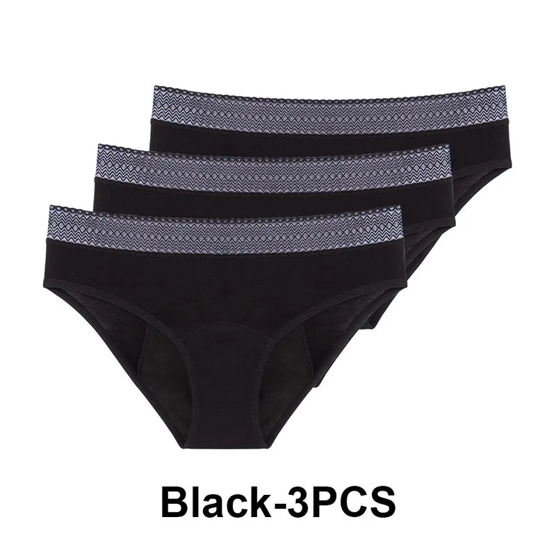 Lot de 3 culottes menstruelles pour femmes en flux très abondant, taille mi-haute, anti-fuites.