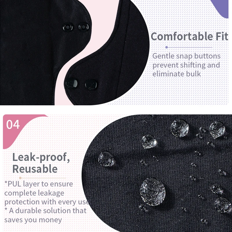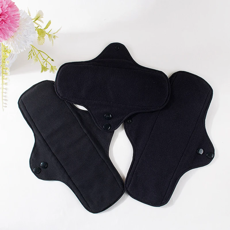 Lot de 10 serviettes hygiéniques réutilisables lavables au charbon de bambou, écologiques et en tissu.