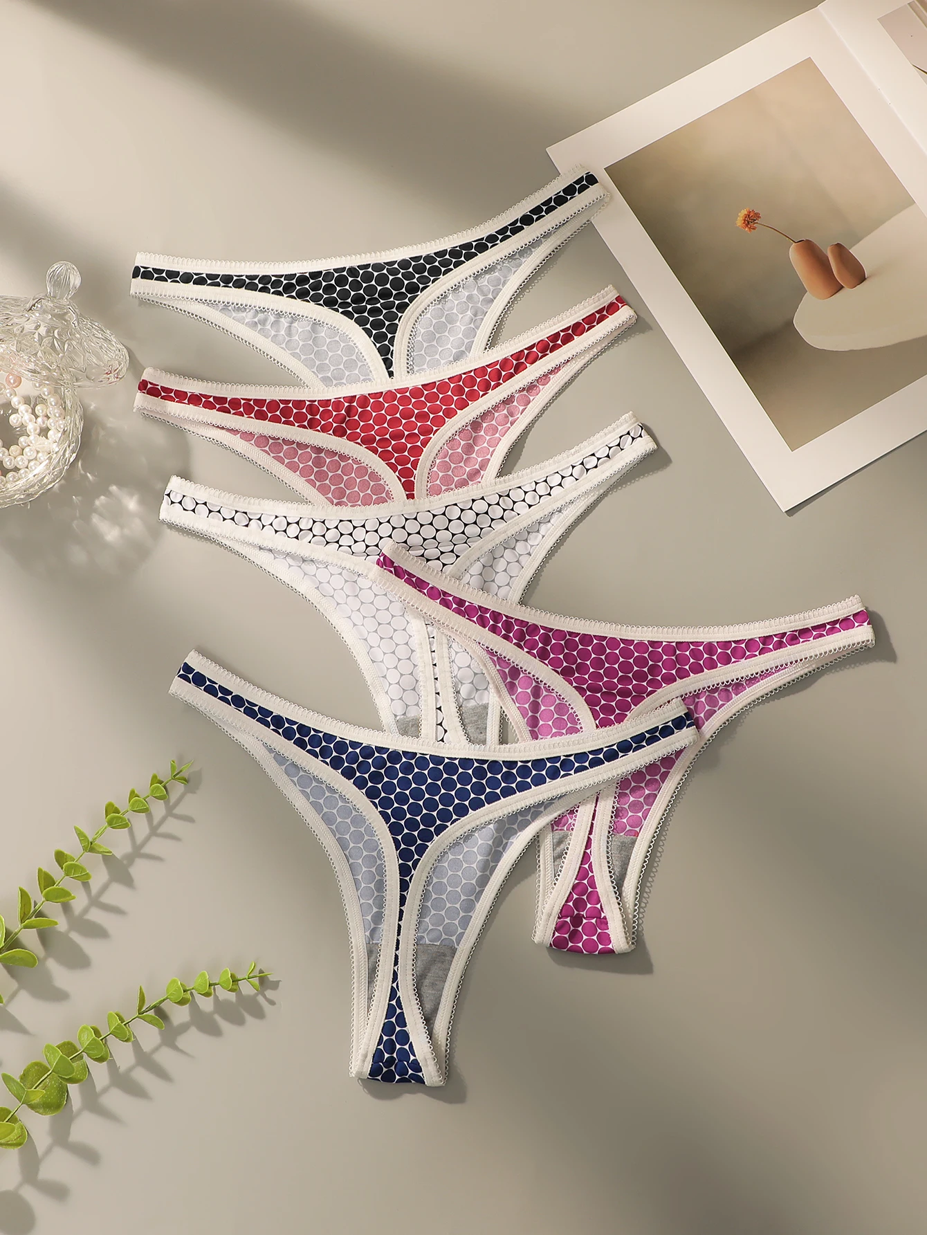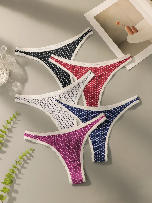 Lot de 5 strings sexy multicolores pour femme, sans coutures, ajourés, respirants, faciles à laver et à sécher, sous-vêtements confortables C908