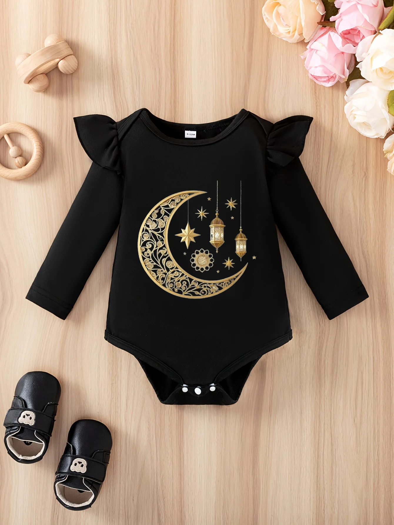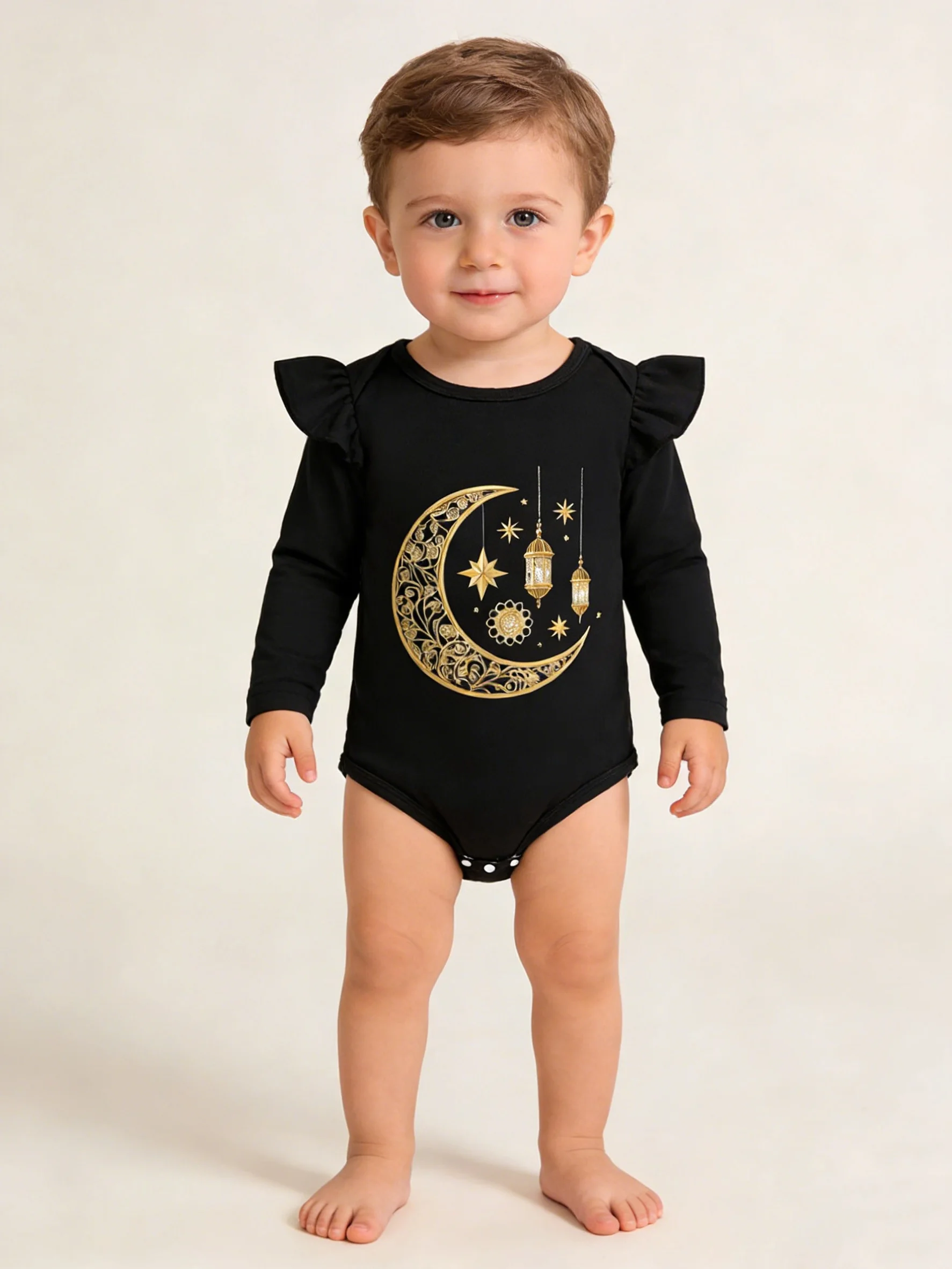 Le body noir peut aussi être mignon : Lanterne en forme de croissant doré – l’ange doux et cool du Ramadan