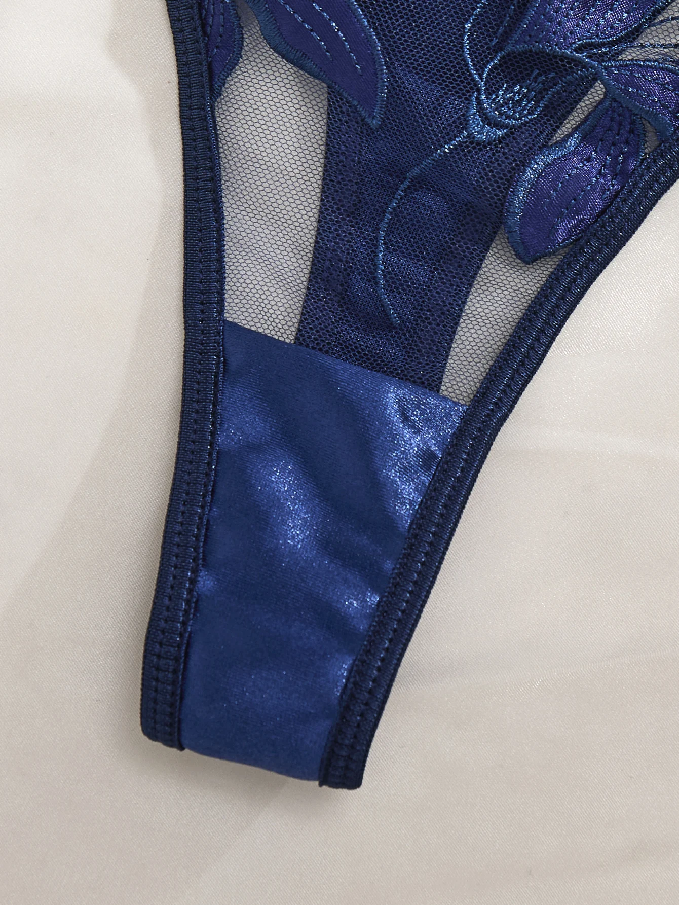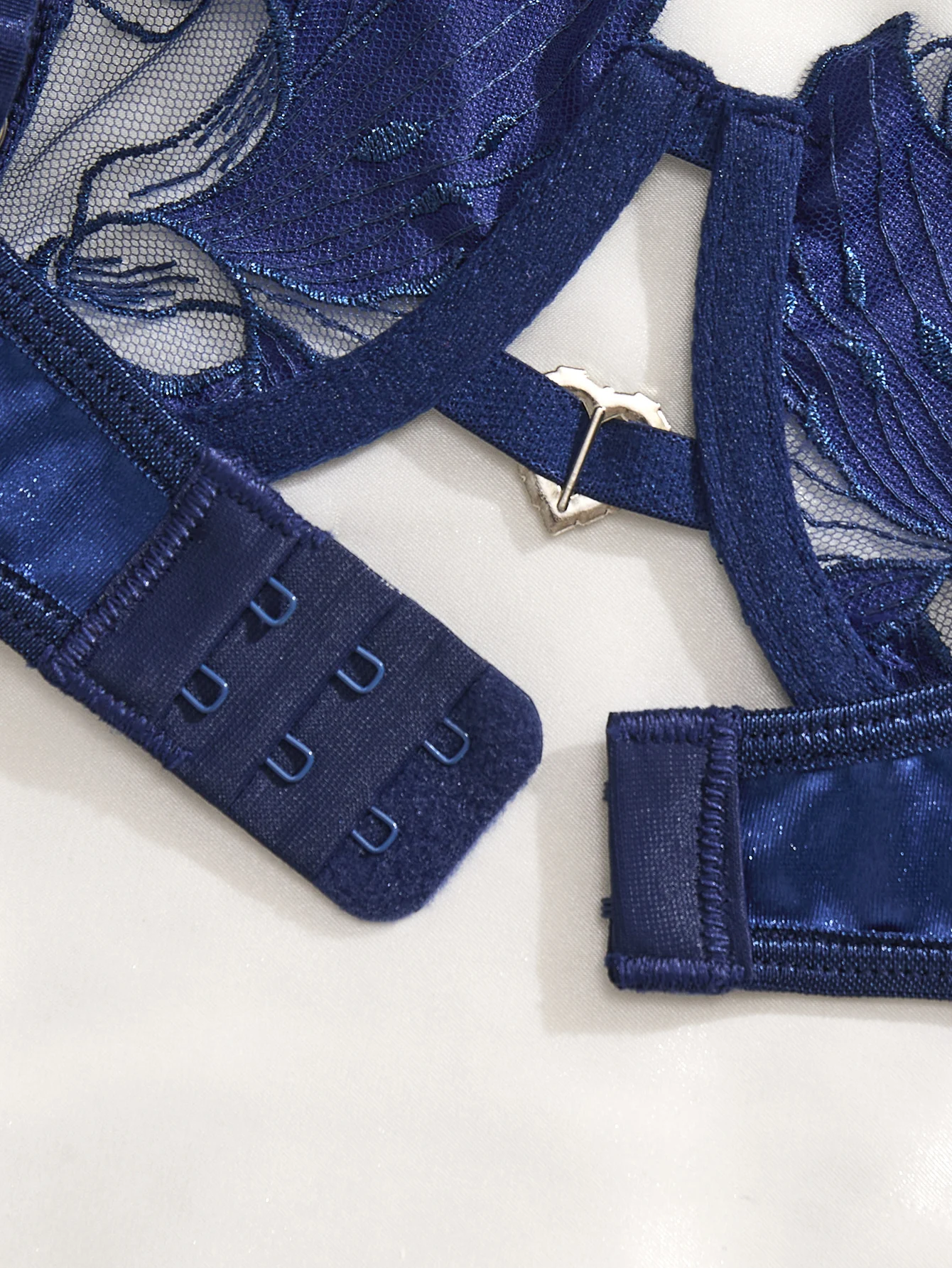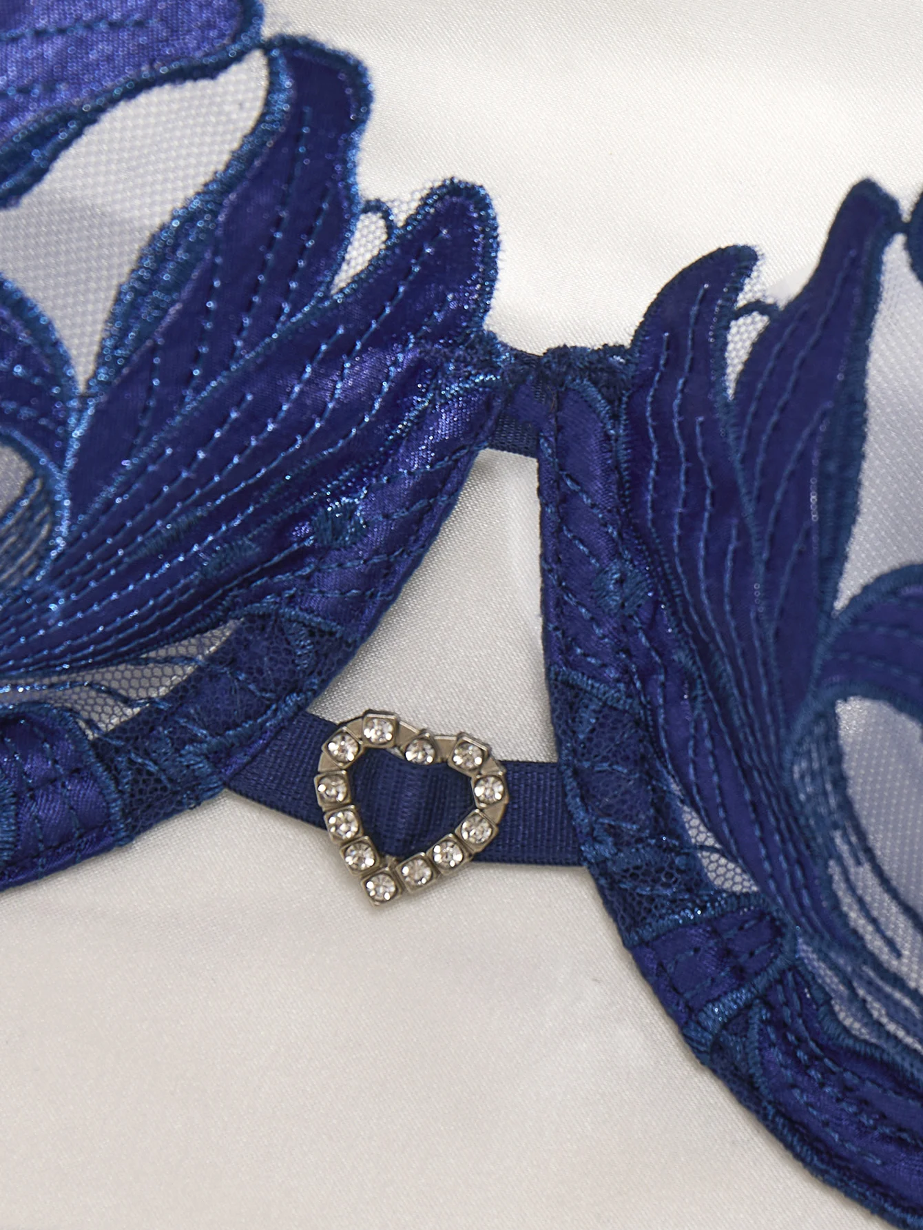 Ensemble de lingerie en dentelle brodée de fleurs bleues, style français, soutien-gorge à bonnets en acier souples et sexy, idéal pour la Saint-Valentin (ZA824031).