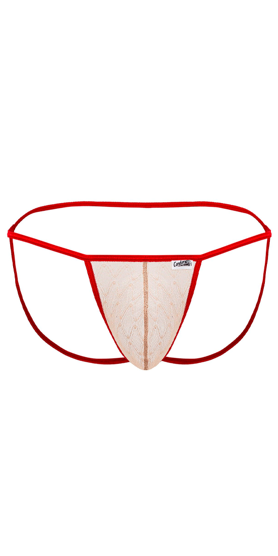 Lingerie-univers 99709 Micro Dentelle Jockstrap Beige-rouge : qualité artisanale unique