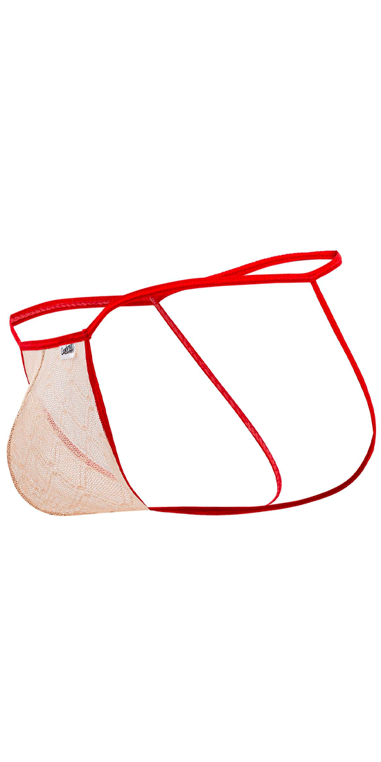 Lingerie-univers 99709 Micro Dentelle Jockstrap Beige-rouge : une touche de séduction