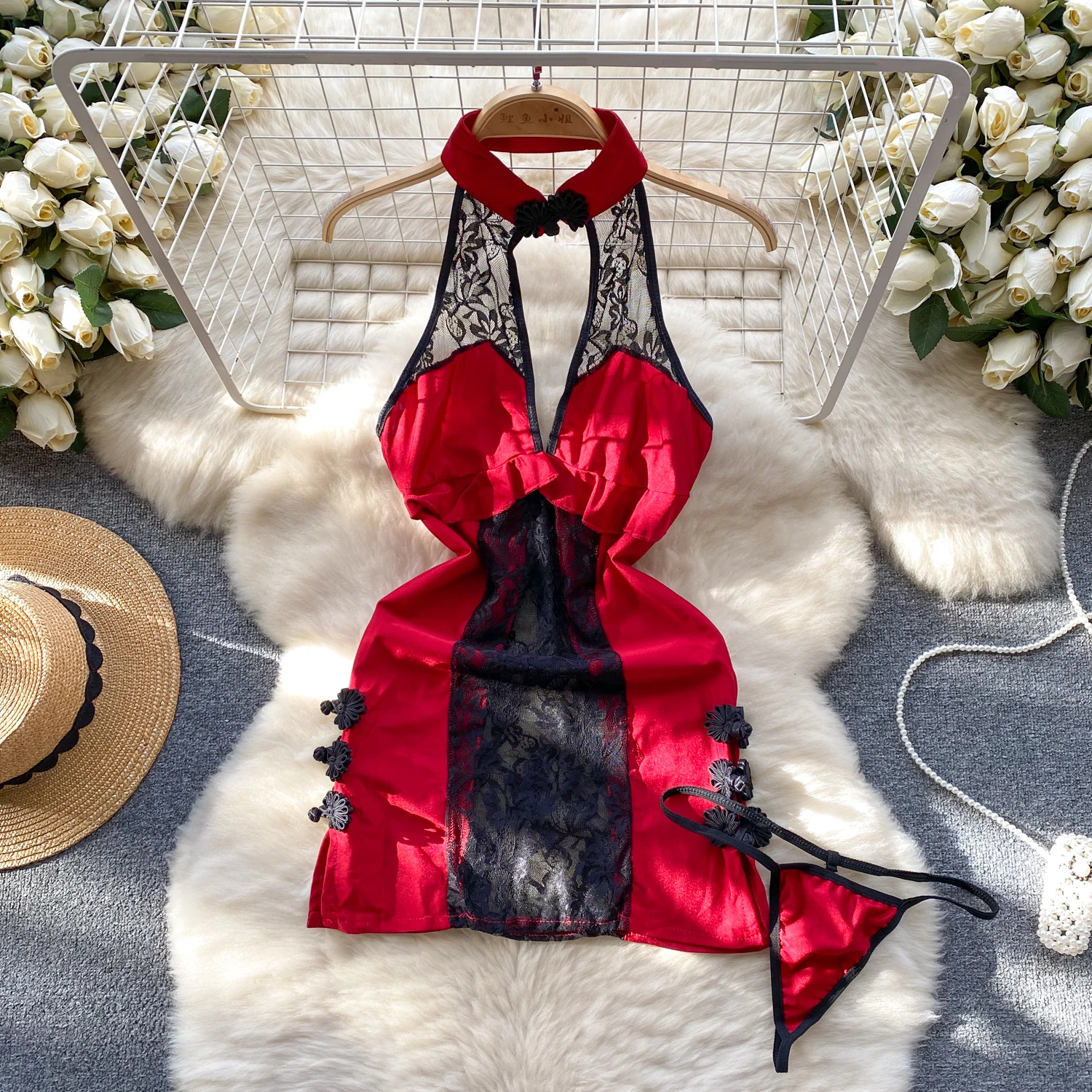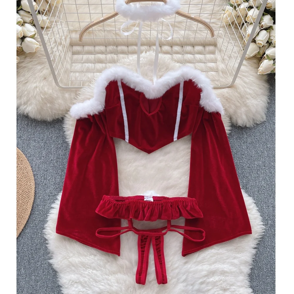 Soyez le premier à laisser votre avis sur “Lingerie de Noël pour femmes : body sexy sans manches à Dentellets et décolleté plongeant en V, patchwork rouge et blanc, thème Père Noël.”
