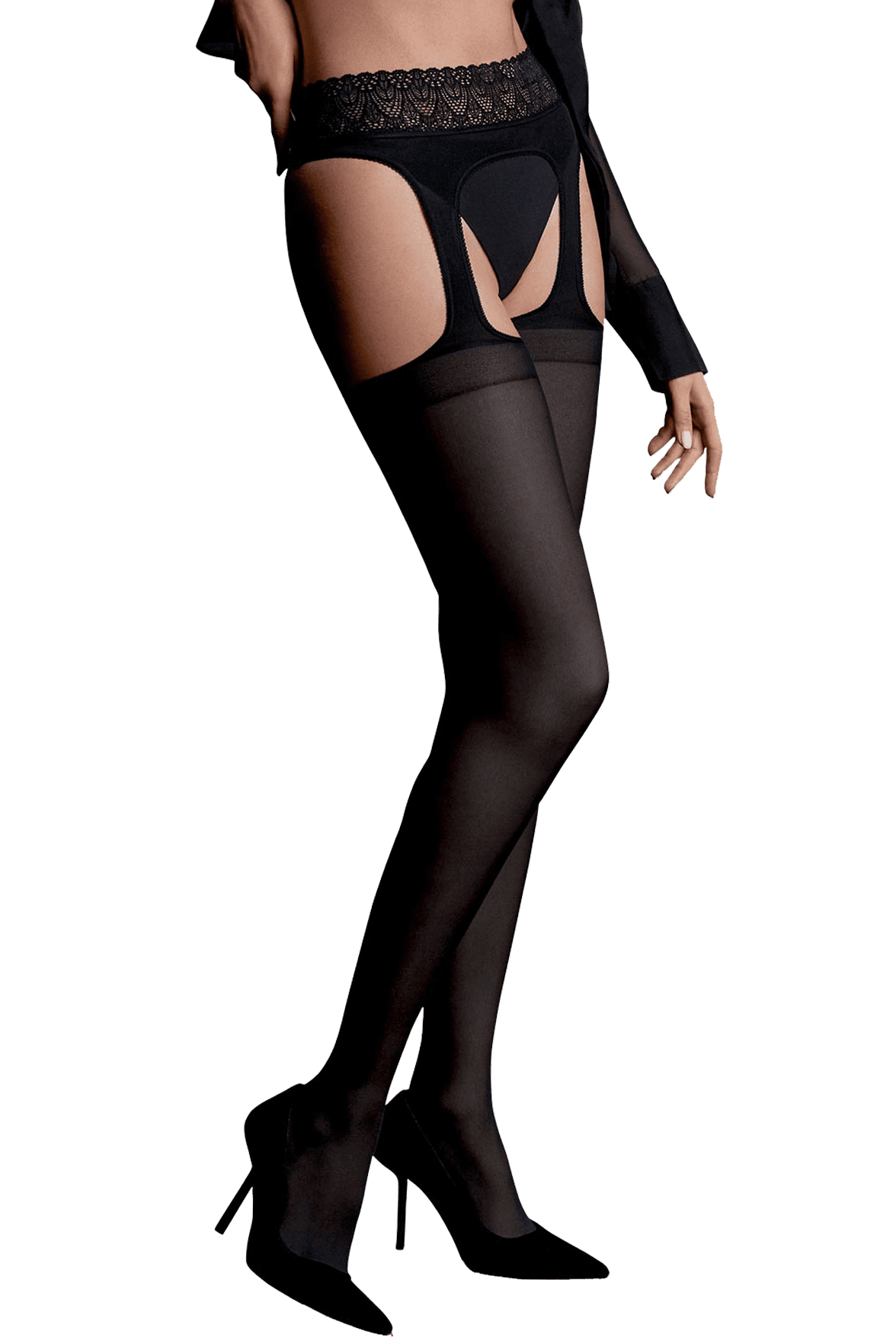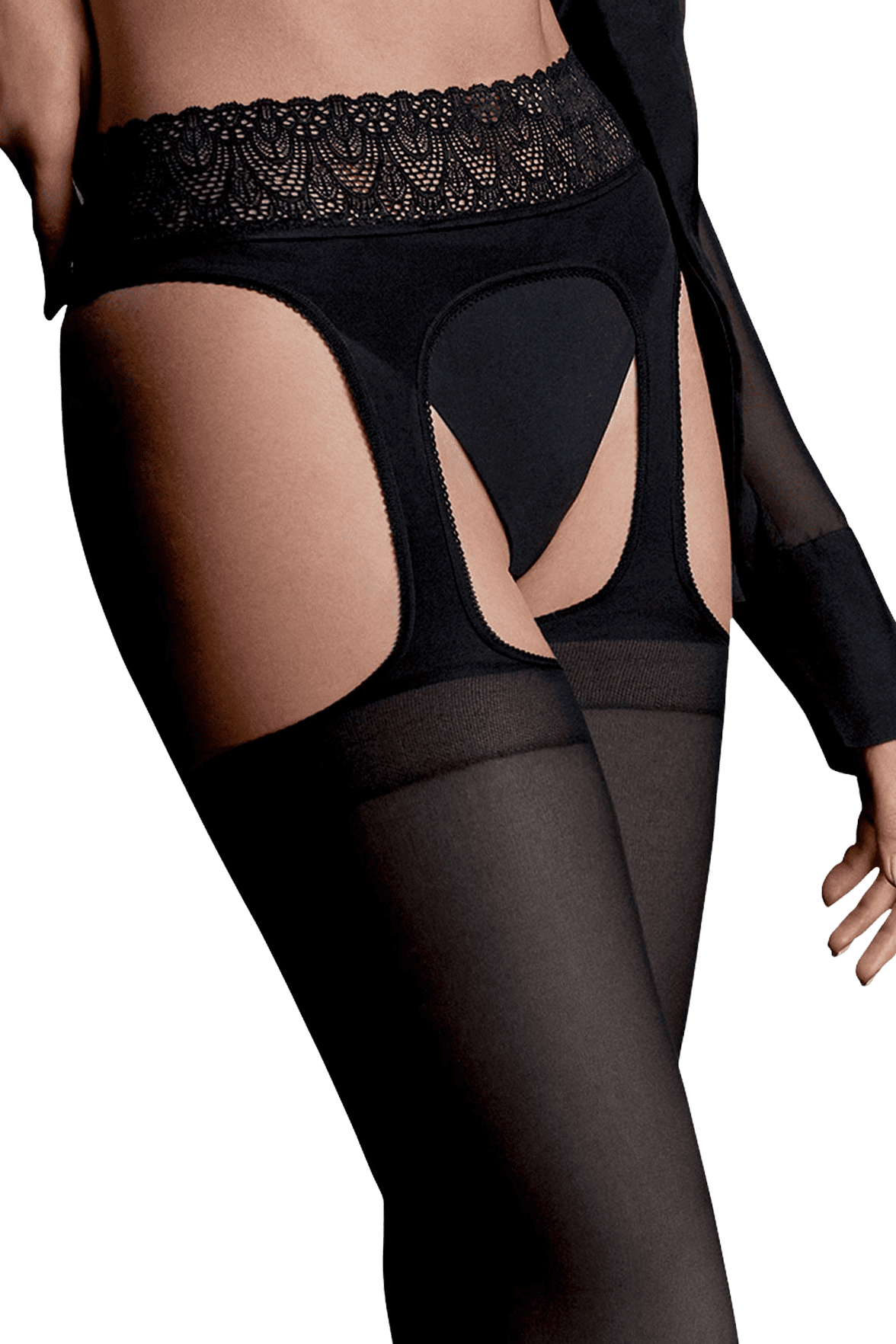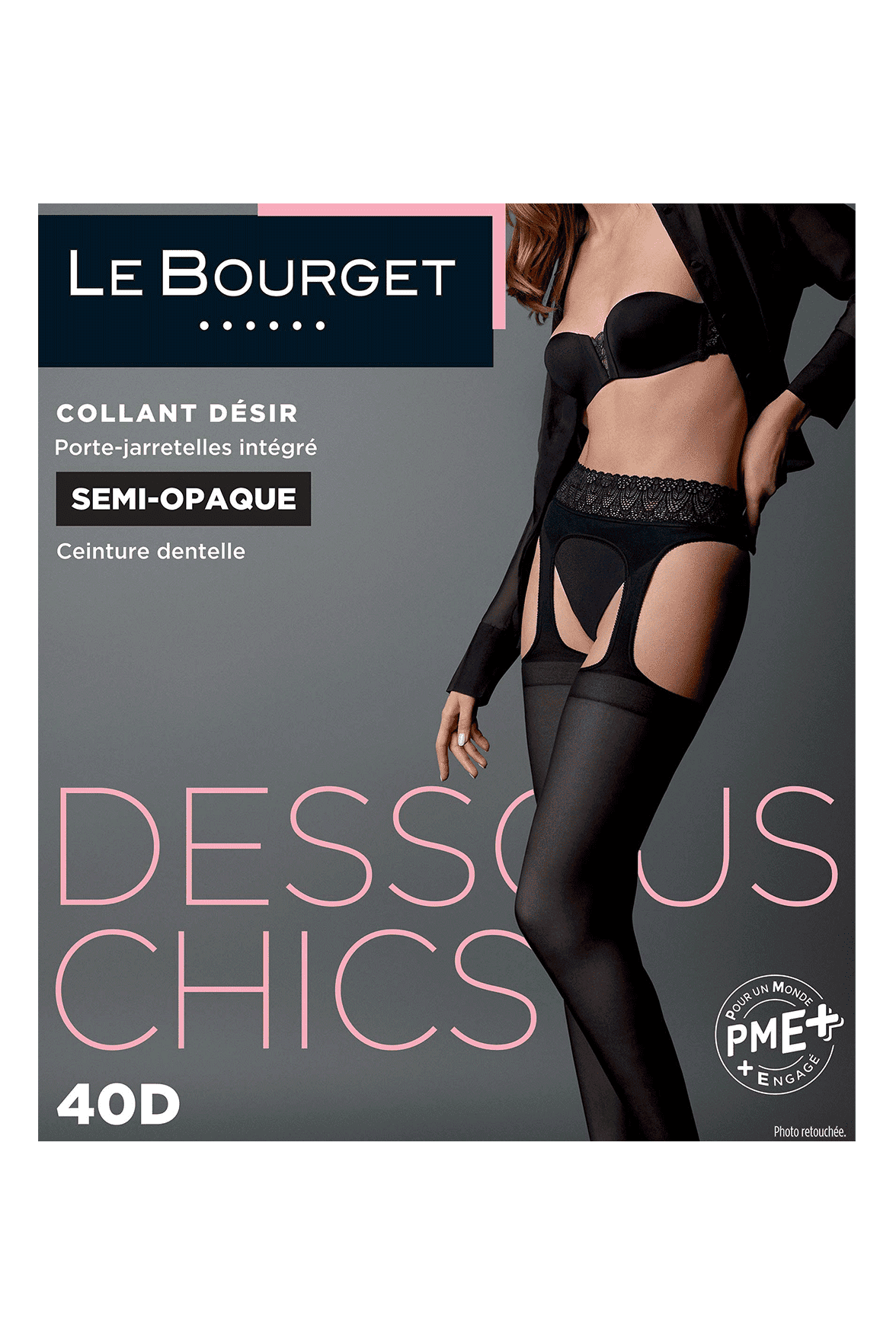 Collant Semi-Opaque Ceinture Dentelle et Porte-Jarretelles Intégré 40D Dessous Chics Désir – Noir