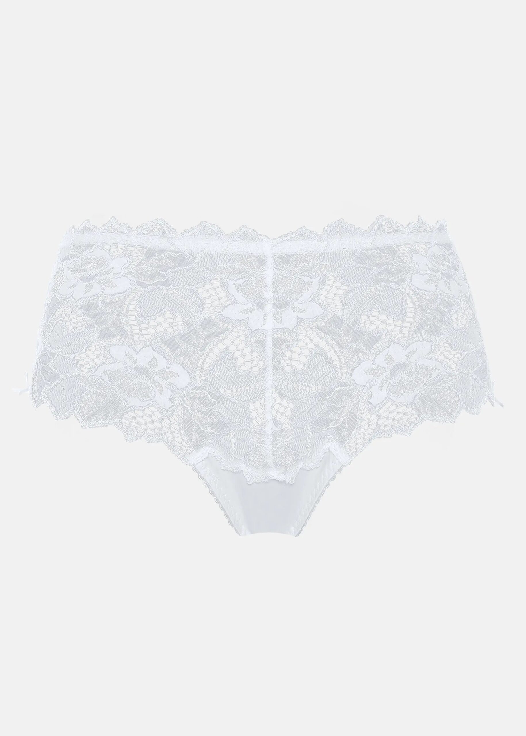 Lingerie-univers met en avant la culotte Arum Blanc, qui se distingue par sa dentelle florale stretch apportant une féminité délicate et discrète. Ce modèle enveloppe votre taille avec une bande élastique qui assure un maintien optimal et un confort total. Sa conception ingénieuse est pensée pour mettre en valeur vos courbes naturelles.