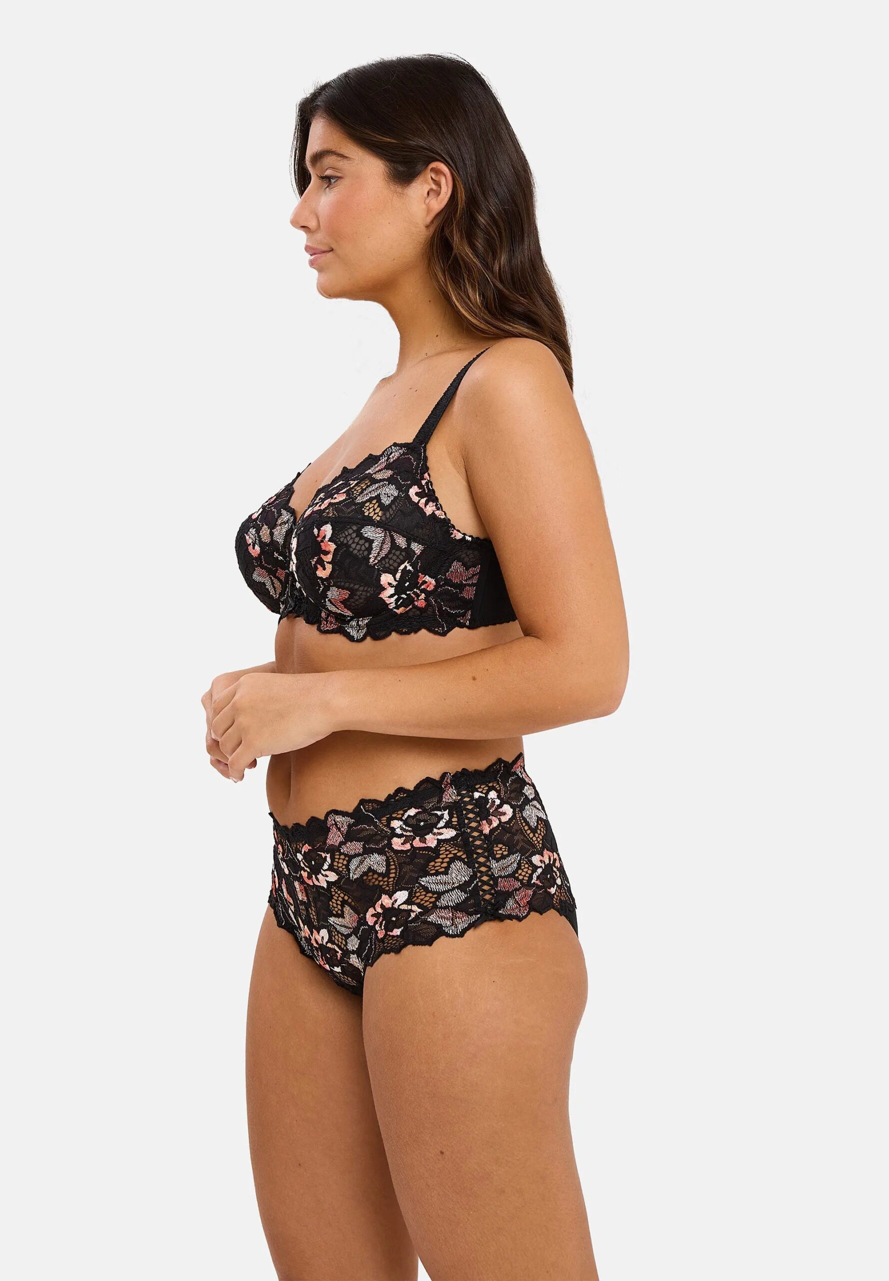 La Culotte Arum Cabaret Noir & Rose de Lingerie-univers allie à merveille élégance et confort, offrant une avancée dans le monde de la lingerie féminine. Fabriquée avec soin, cette culotte en dentelle florale avec fils bayadères se distingue par une esthétique sensuelle, parfaite pour s’intégrer dans votre collection de lingerie raffinée.