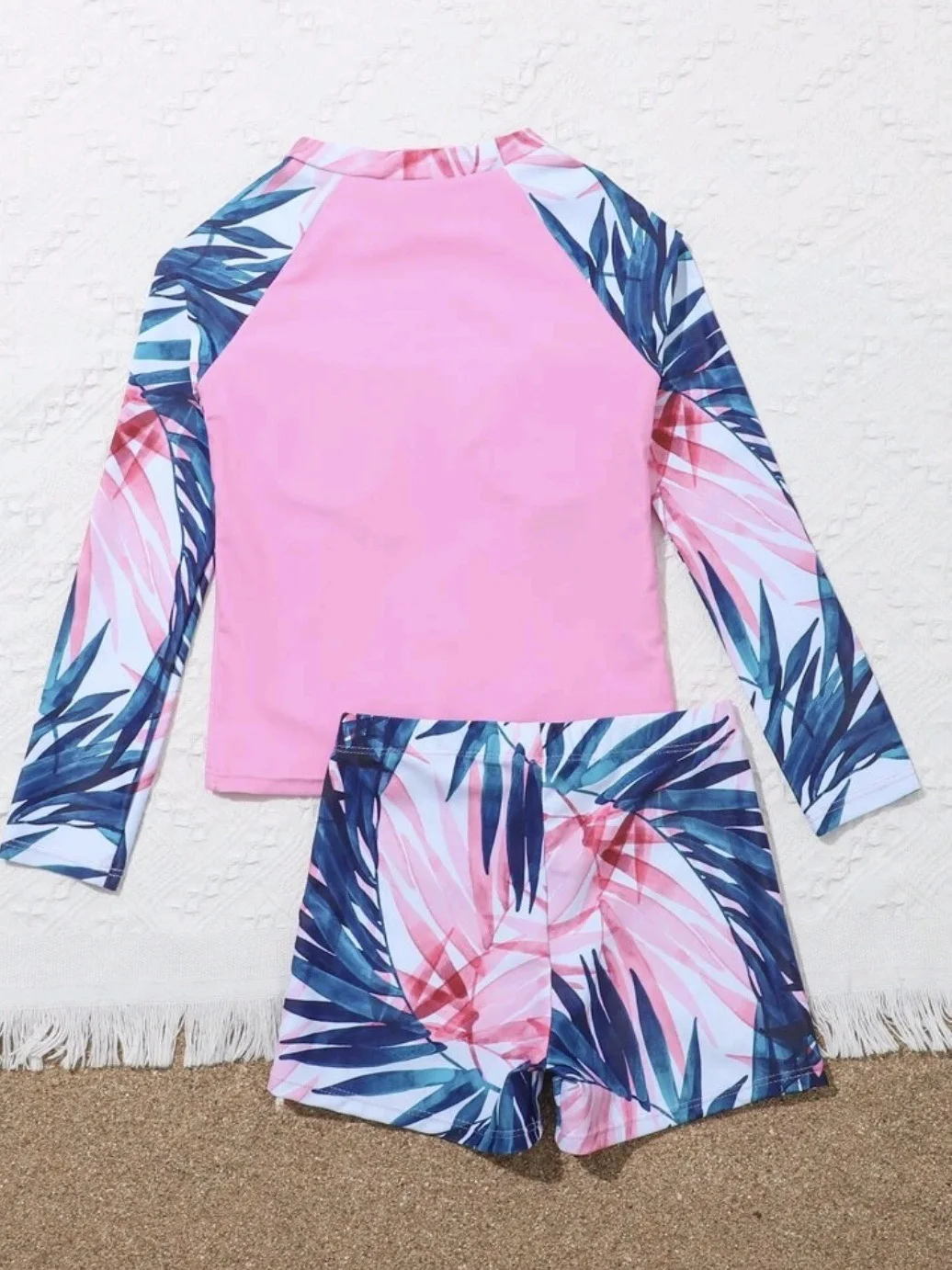 Maillot de bain fille 2024, nouveau modèle rose imprimé à manches longues, maillot de bain d'été pour enfants, short de bain pour filles