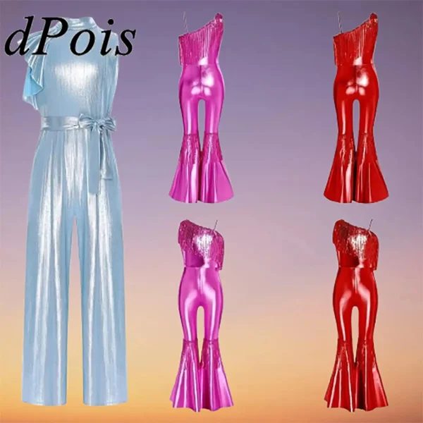 Combinaison à paillettes scintillantes pour filles, body sans manches, déguisement de lutin de Noël, tenue de danse pour enfants, Nouvel An et Noël