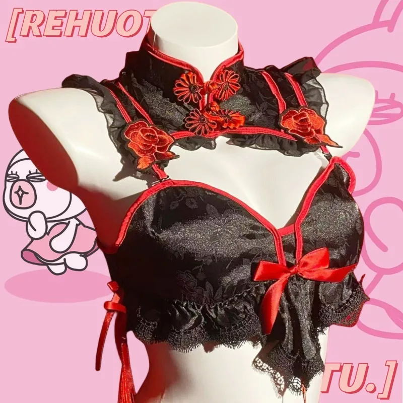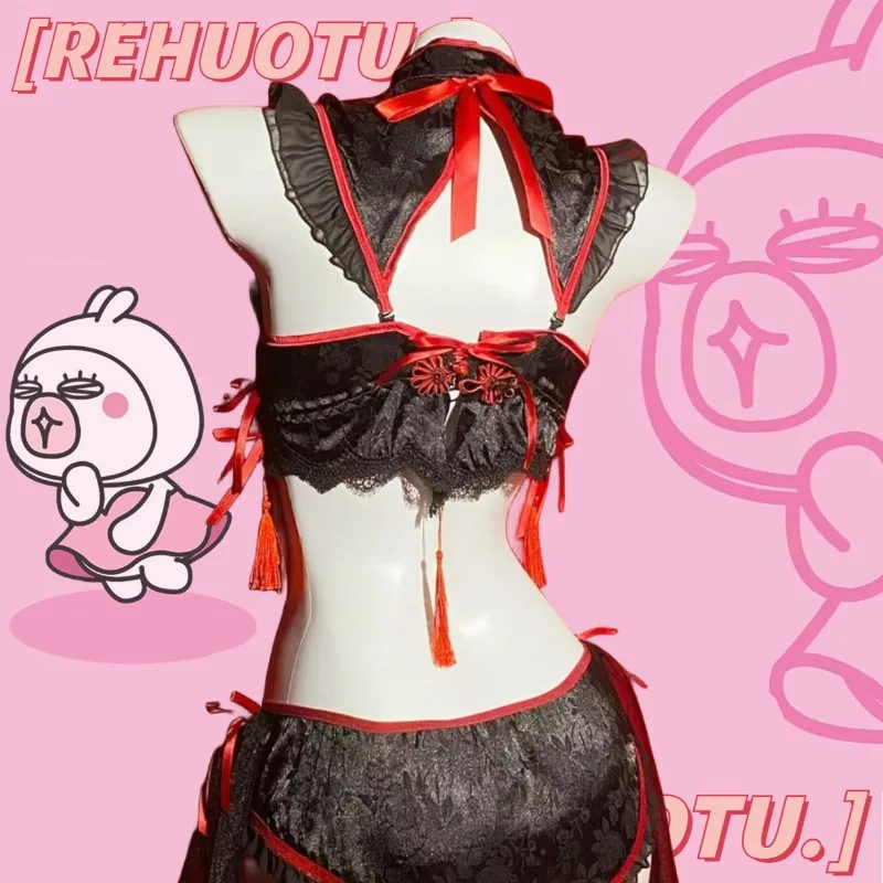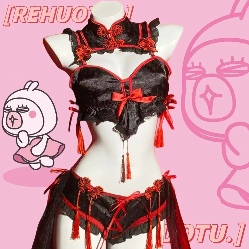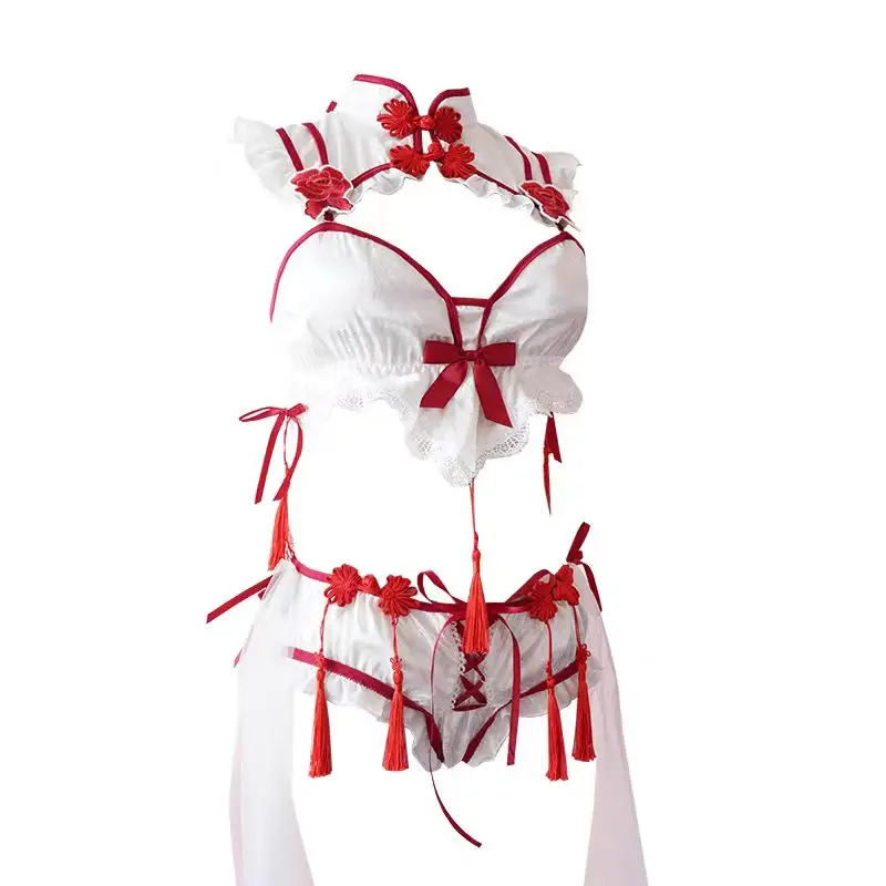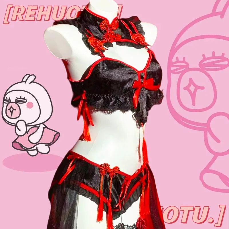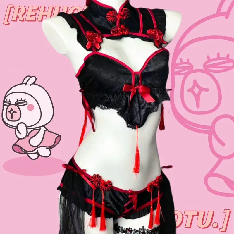 Robe de lingerie Cheongsam gothique vintage, uniforme de soubrette, ensemble de sous-vêtements en dentelle brodée Lolita, costume sexy d’Halloween.