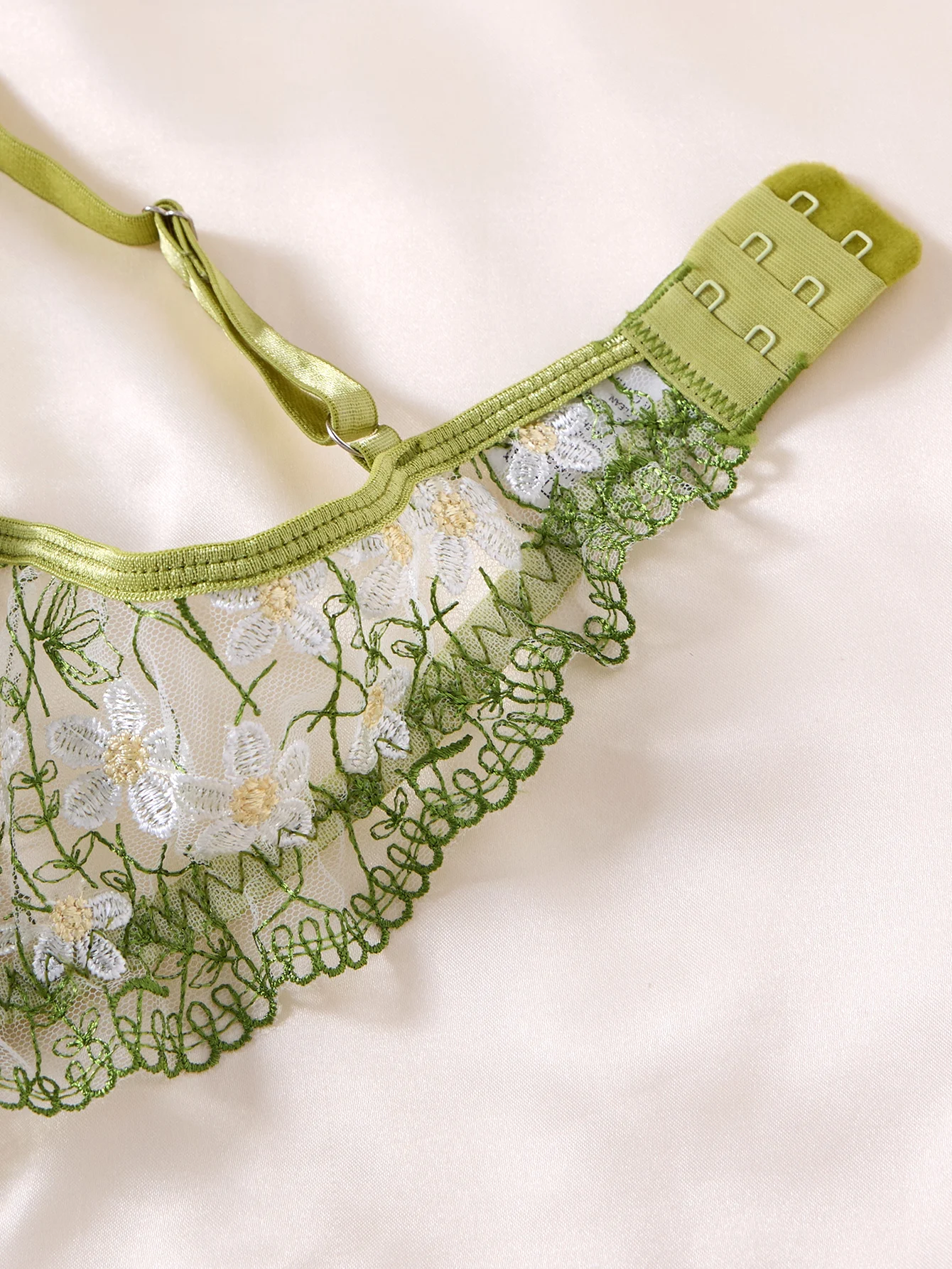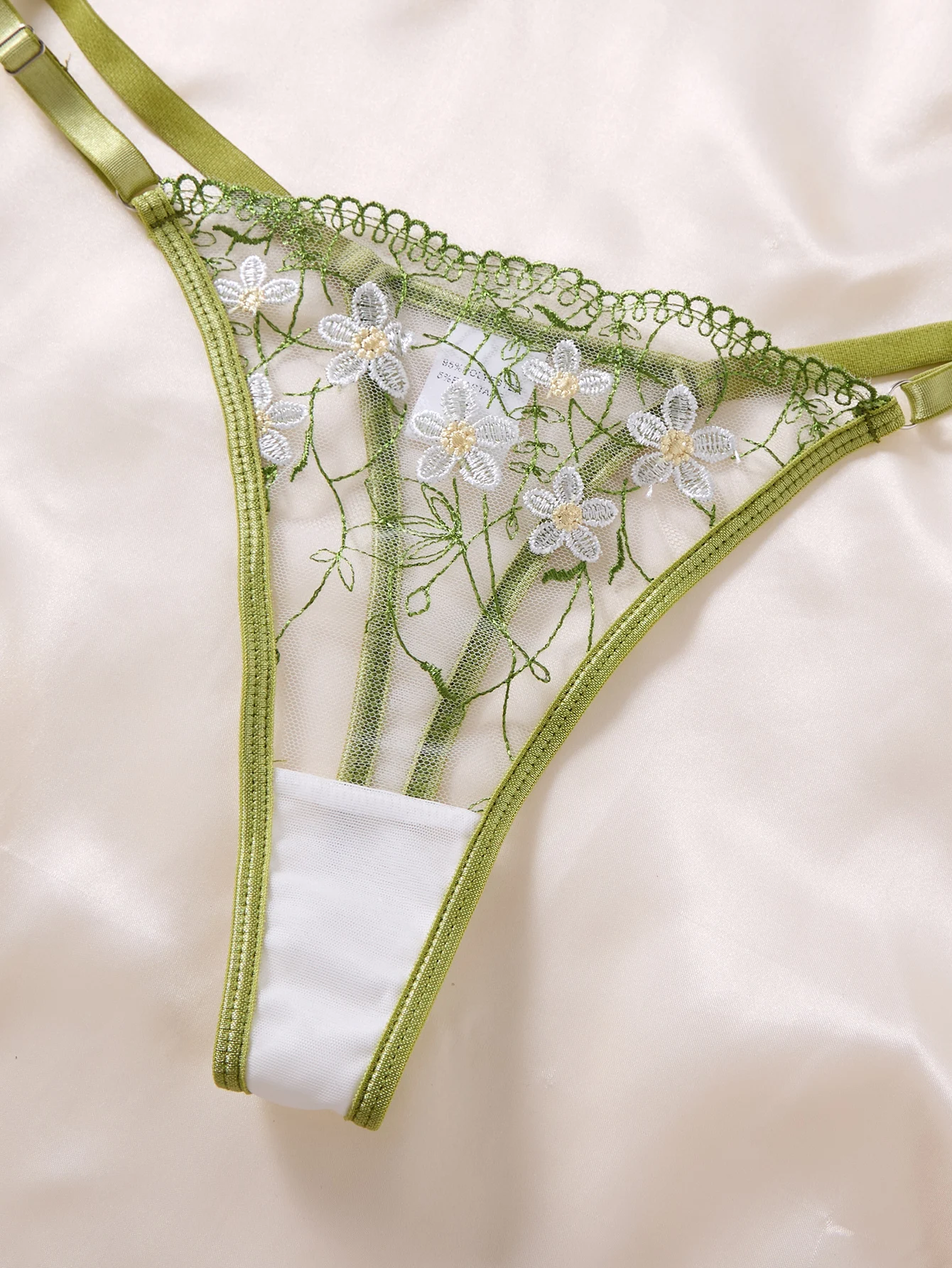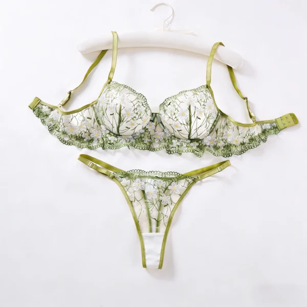 Lingerie une pièce en dentelle verte sexy, transparente et brodée, soutien-gorge à armatures souples, pure passion et douceur françaises ZA825194