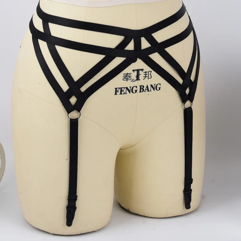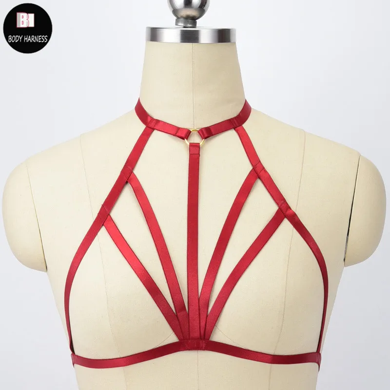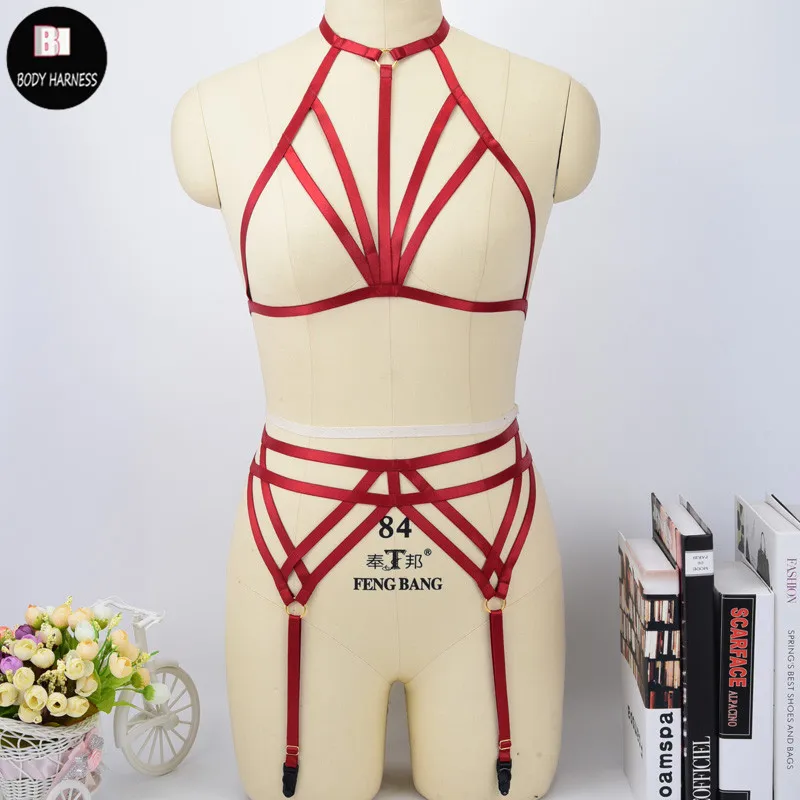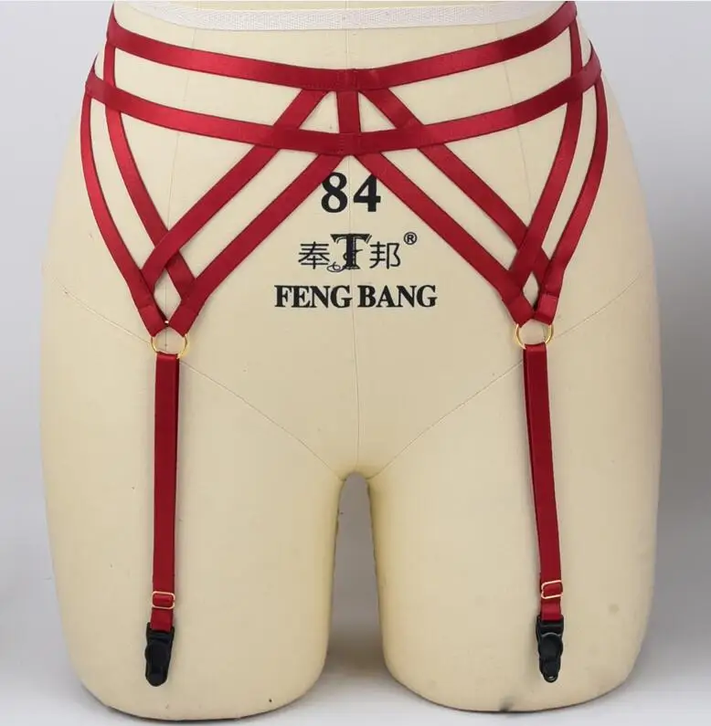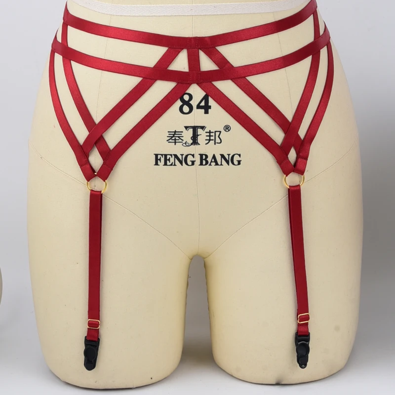 Harnais porte-jarretelles rouge élastique, lingerie gothique, cage, harnais de bondage, fétichisme des jarretières de mariage, bas et ceinture