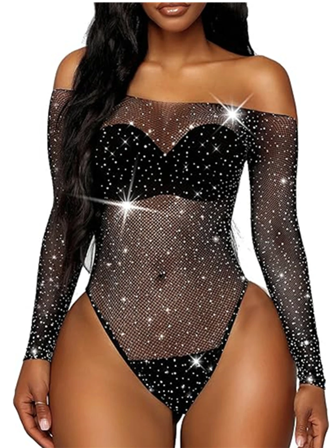 Soyez le premier à laisser votre avis sur “Body en dentelle pour femme, body skinny sexy et basique, top ajouré, body résille à manches longues, lingerie à strass.”