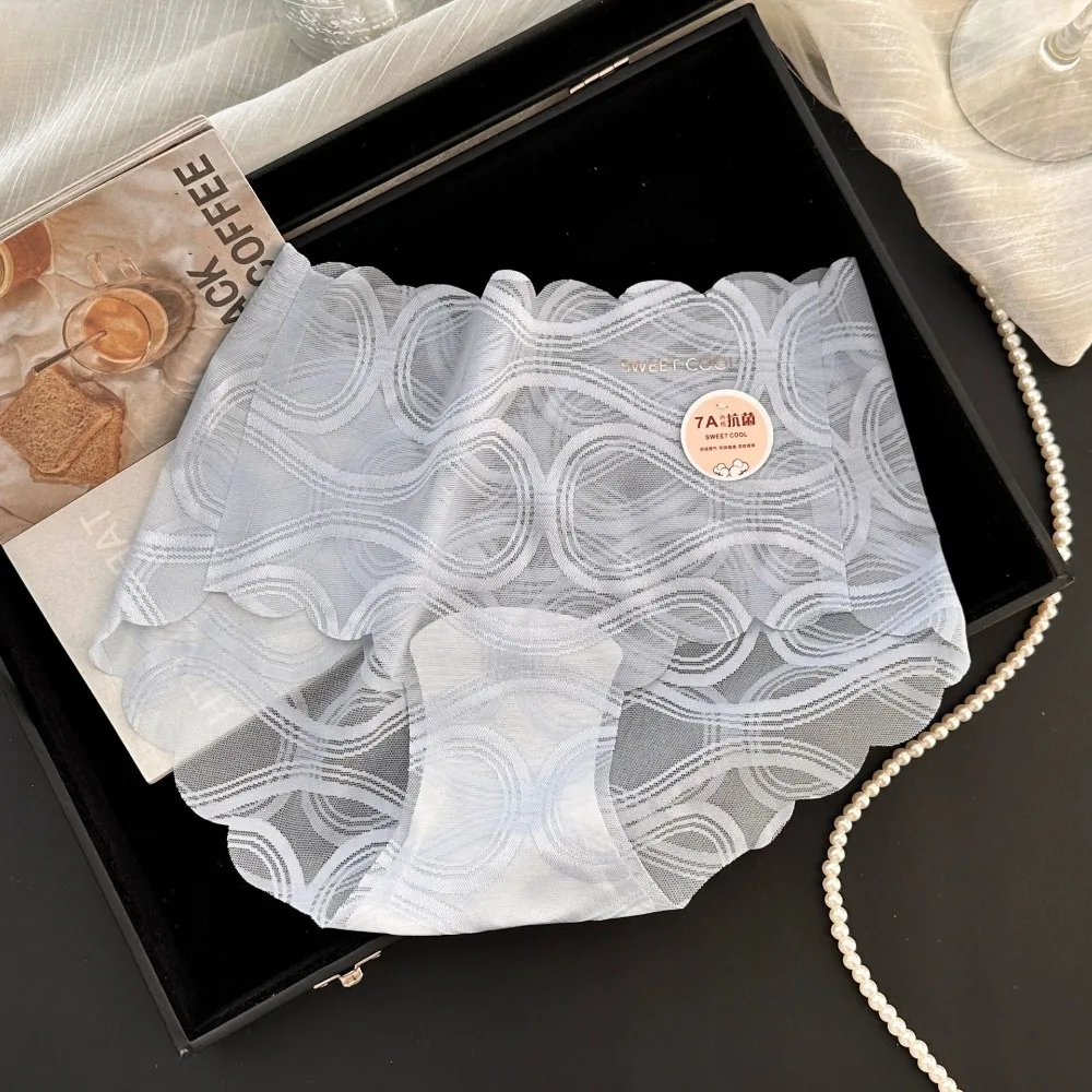 Culottes en dentelle douce et résille, taille mi-haute, fines et sans coutures, entrejambe en coton transparent, sous-vêtements pour femmes