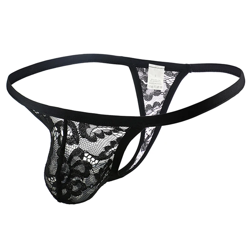 Sous-vêtements sexy pour hommes en dentelle transparente, string en maille florale transparente, culotte érotique fétichiste, bikini sissy