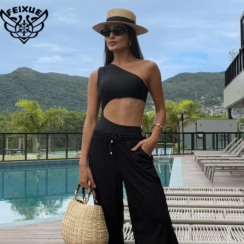 Maillot de bain une pièce sexy à une épaule pour femme, style bikini taille haute, monokini, tenue de plage