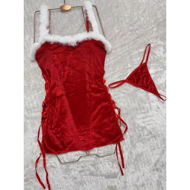 Robe de Noël rouge, lingerie sexy et décolletée, robe de soirée sans manches et dos nu en velours, mini-robe moulante en velours, tenue de club