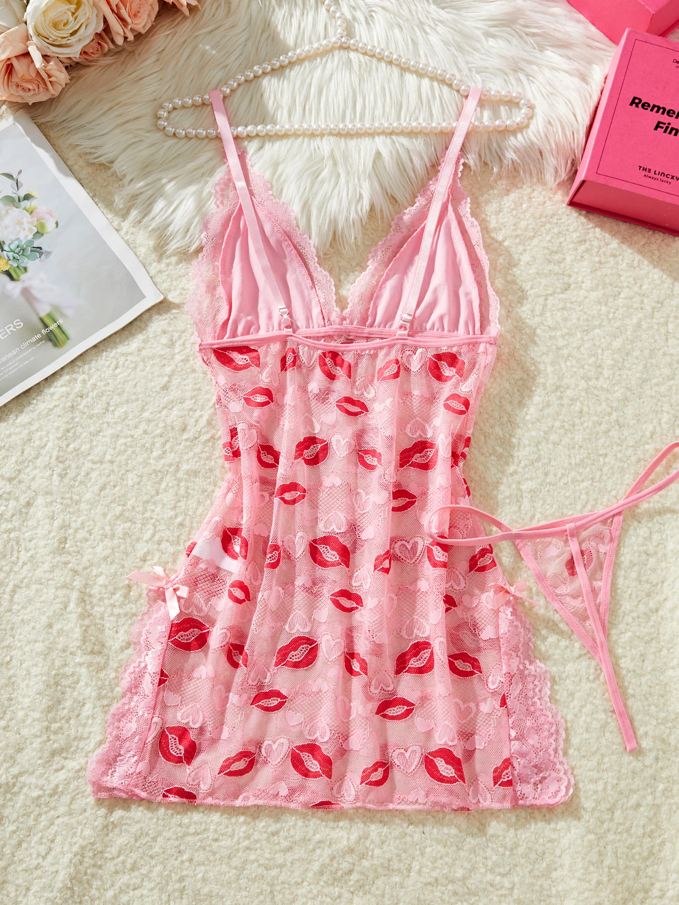 Numéro de modèle: sensual Babydolls Sexy rosa encaje camisa de noche de dos piezas