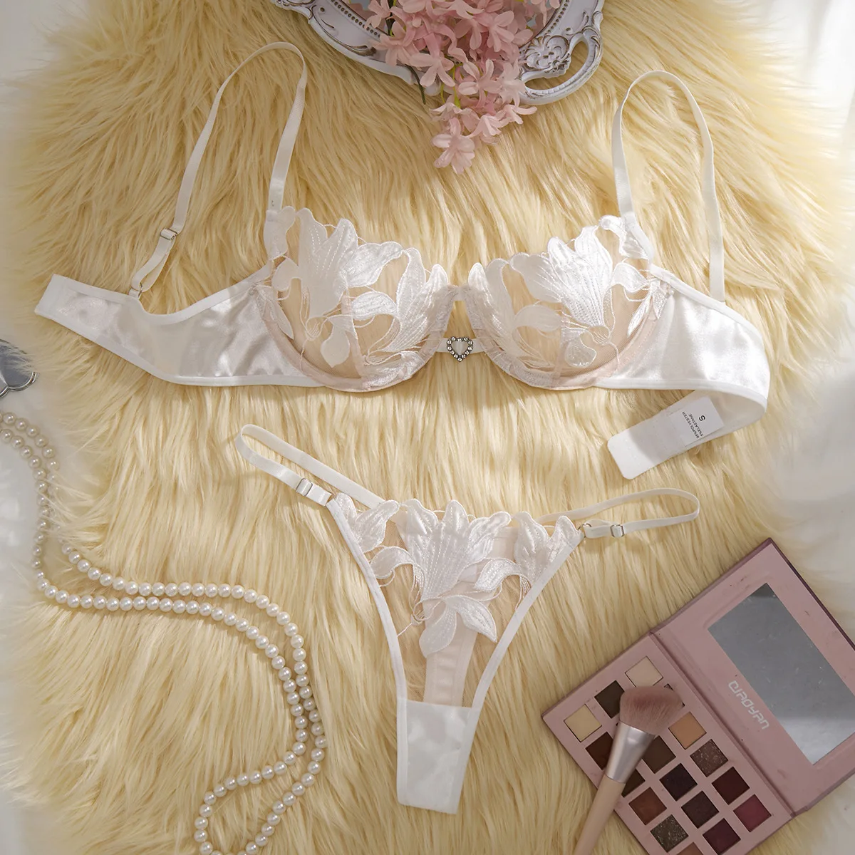 Ensemble de lingerie sexy orné de broderies florales fraîches, Pure Desire, ensemble de lingerie érotique trois pièces
