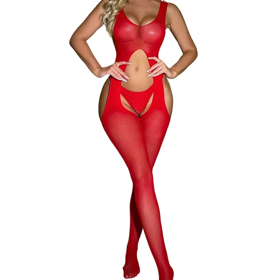 Lingerie sexy pour femme, body en résille ajourée, nuisette, bas résille à entrejambe ouverte, lingerie érotique, costume porno