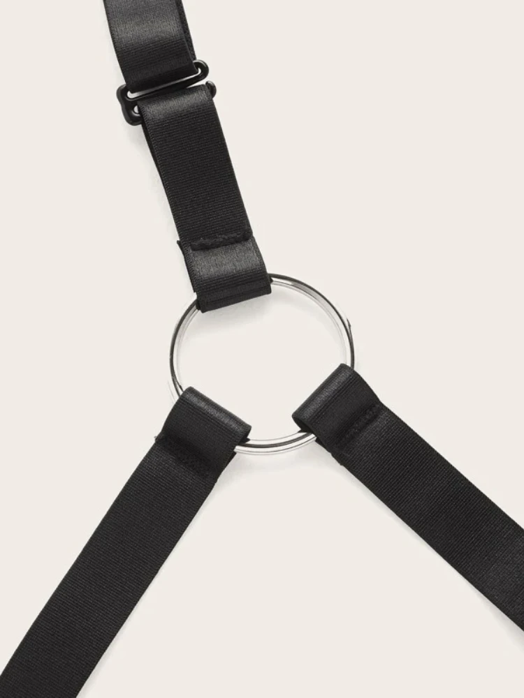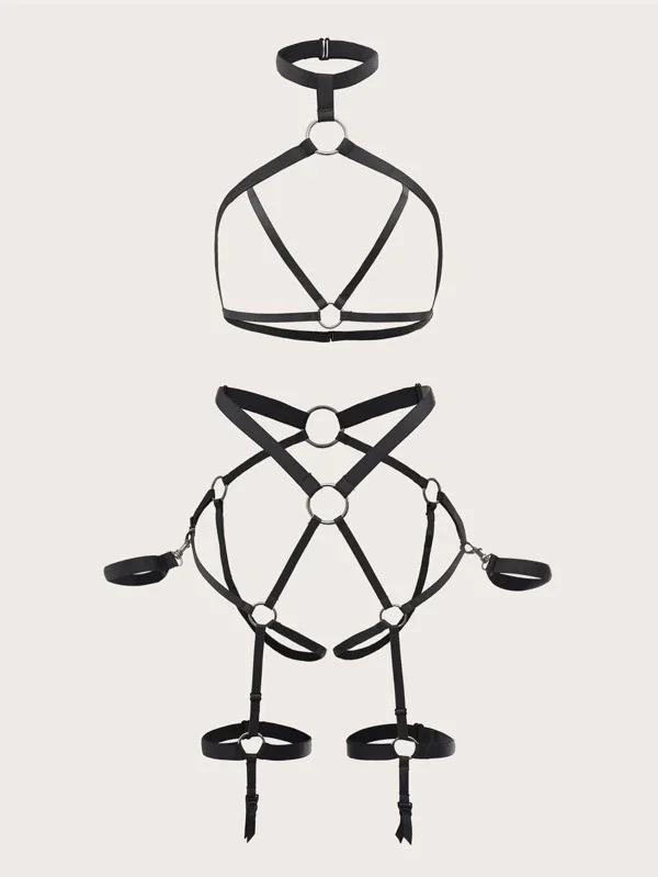 Lingerie ajourée, harnais de bondage, noir, sans élasticité, en polyester, longueur standard, idéal pour la saison.