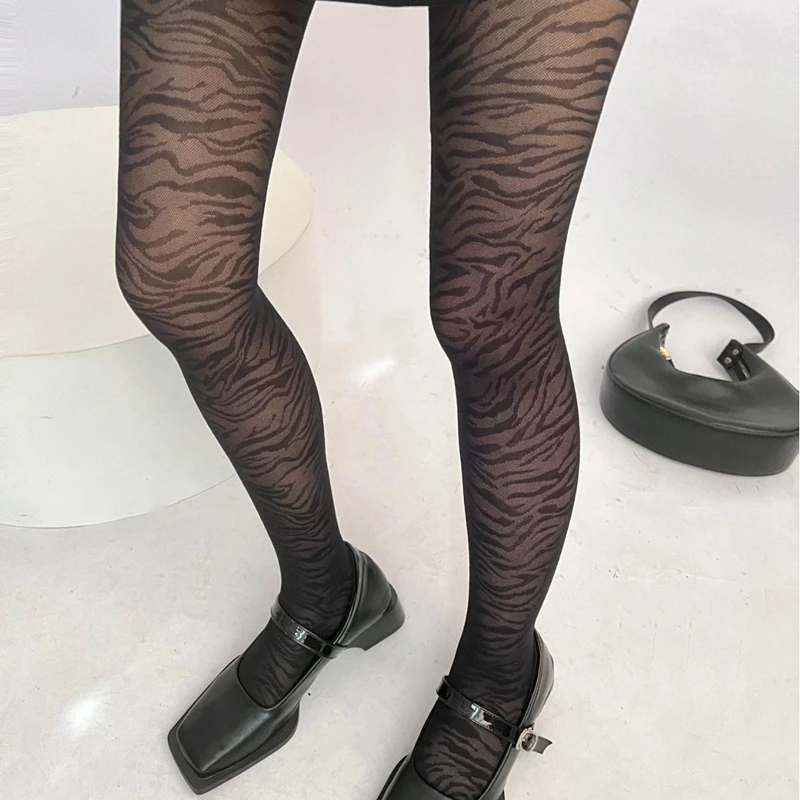 Collants fins à rayures noires pour femmes, motif zèbre, style sexy, collants tendance pour femmes au bureau, leggings pour femmes