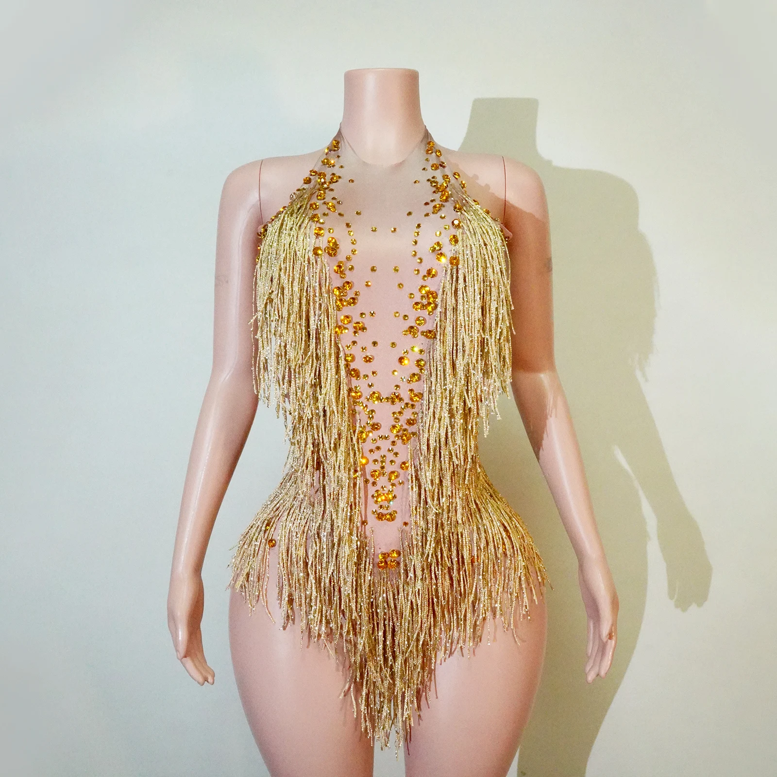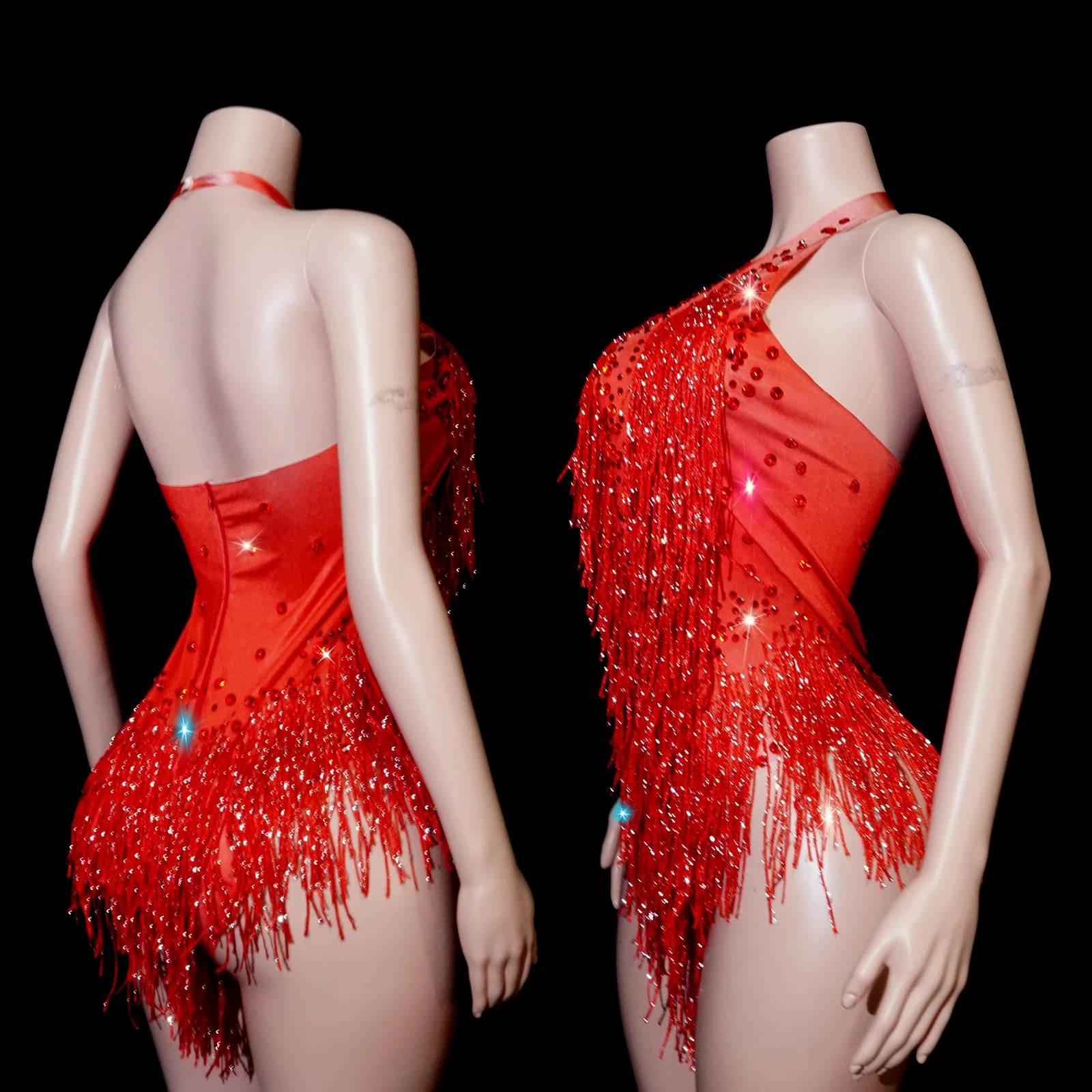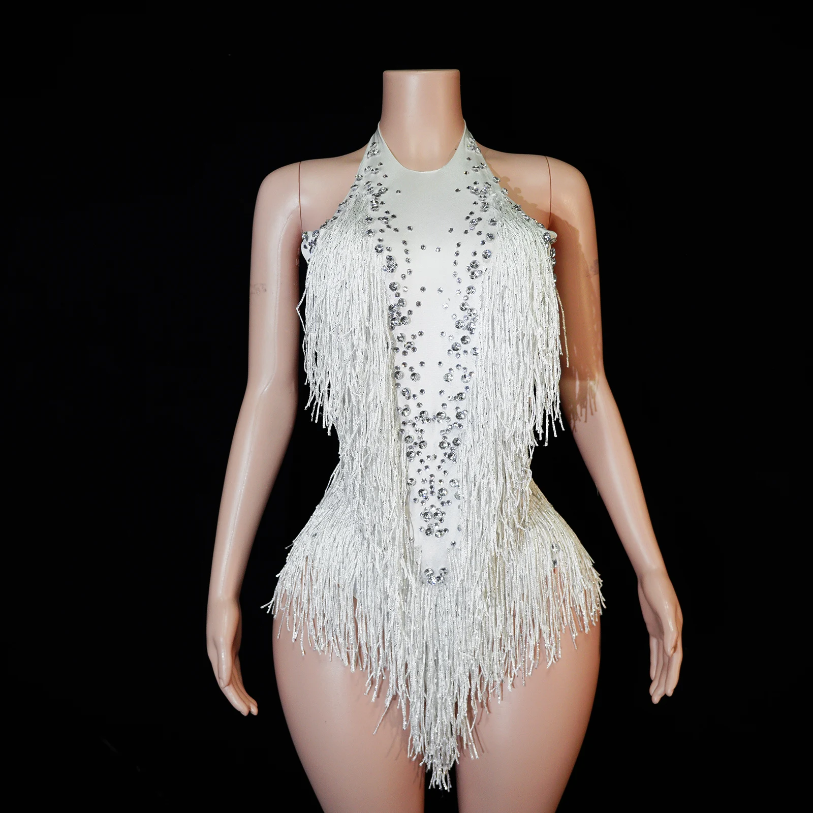 Nouveau body à franges et strass scintillants pour femme, tenue de soirée, costume de danse une pièce, justaucorps de scène pour chanteuse