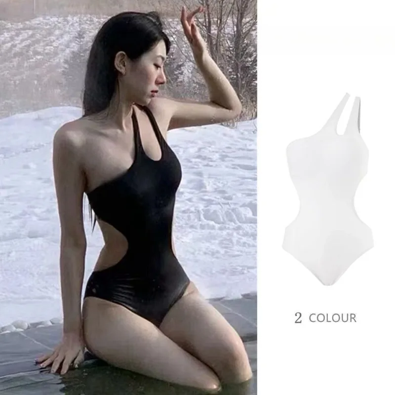 Maillot de bain une pièce sexy tendance pour femmes, collection été 2026, inspiré des célébrités d'Internet. Ce modèle une pièce, épaules dénudées, dos nu et coupe amincissante est idéal pour les vacances.