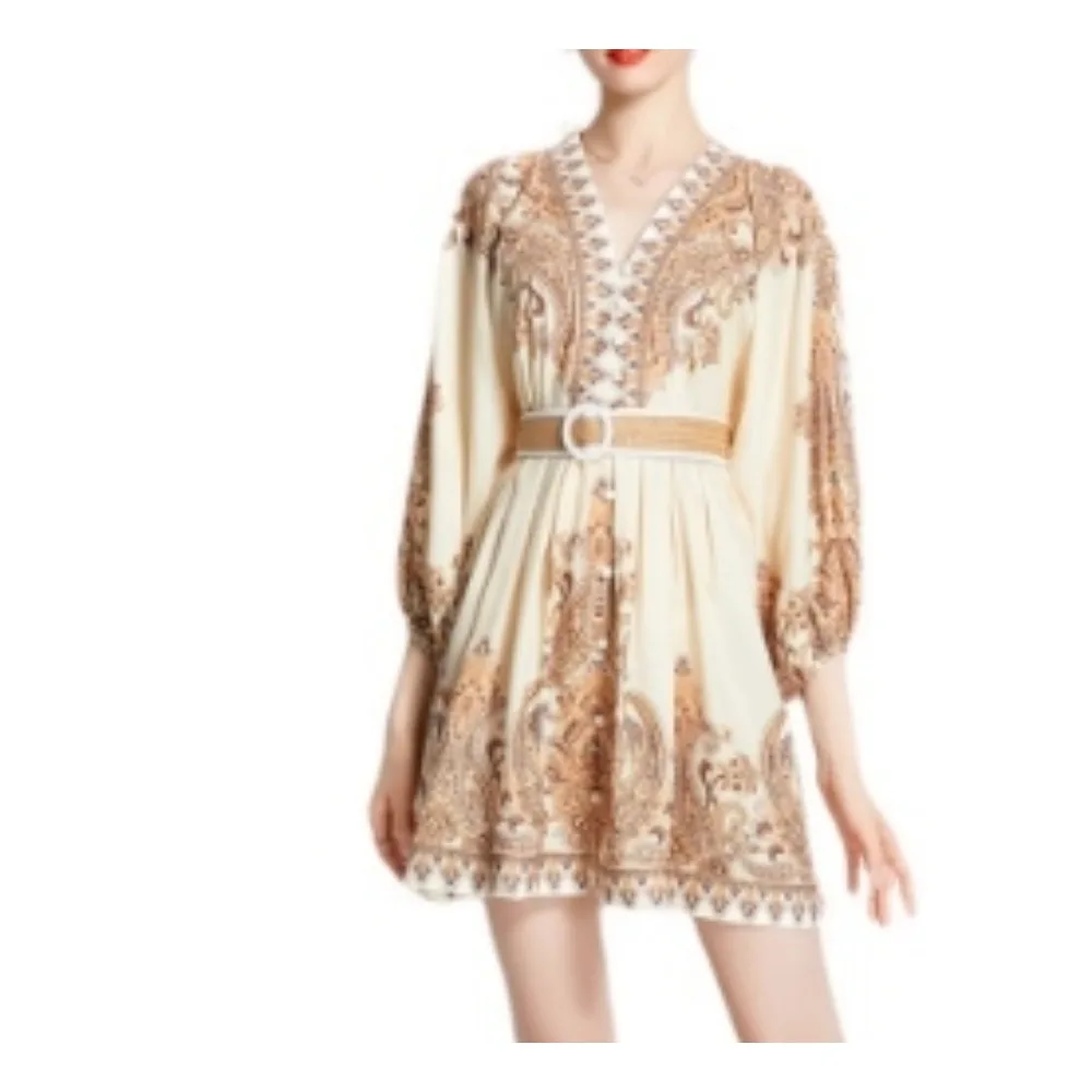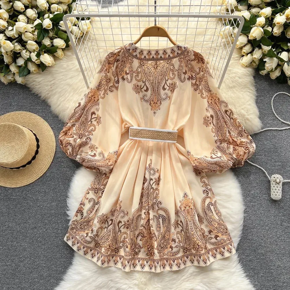 Soyez le premier à laisser votre avis sur “Robe élégante vintage à imprimé, col en V, manches longues, coupe trapèze, style lanterne, mode femme automne-printemps”