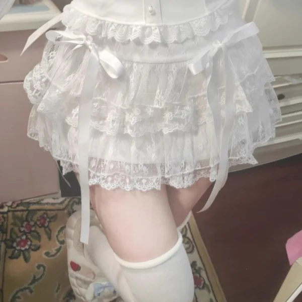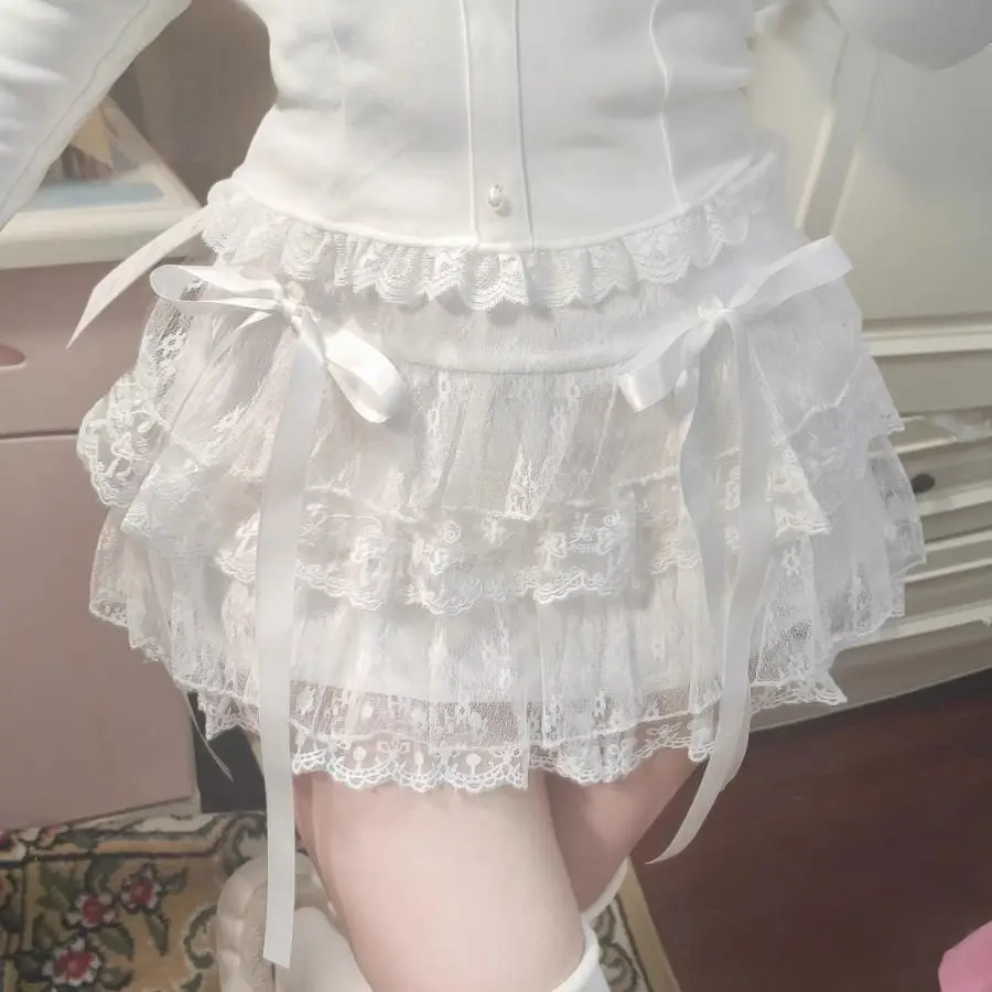 Jupe en dentelle blanche style gâteau, été 2024, nouvelle jupe bouffante taille haute en résille.