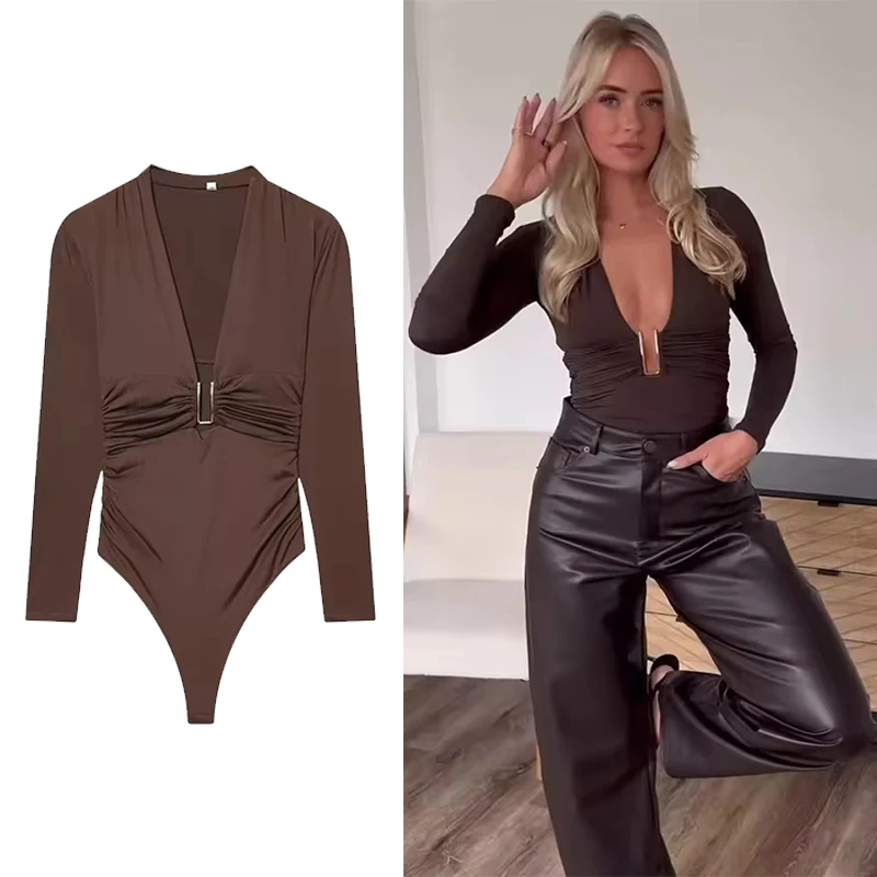 Soyez le premier à laisser votre avis sur “Body femme sexy à manches longues, body moulant, combinaison courte tendance été streetwear.”