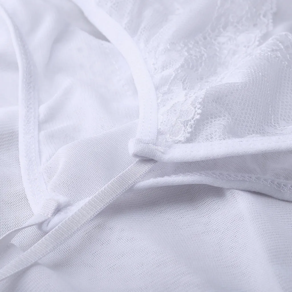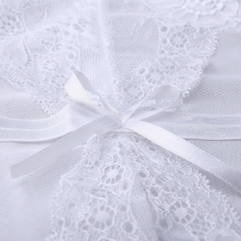 Ensemble de lingerie féminine blanc bustier corset gaine sexy avec string transparent et sous-vêtements érotiques blancs nuisette