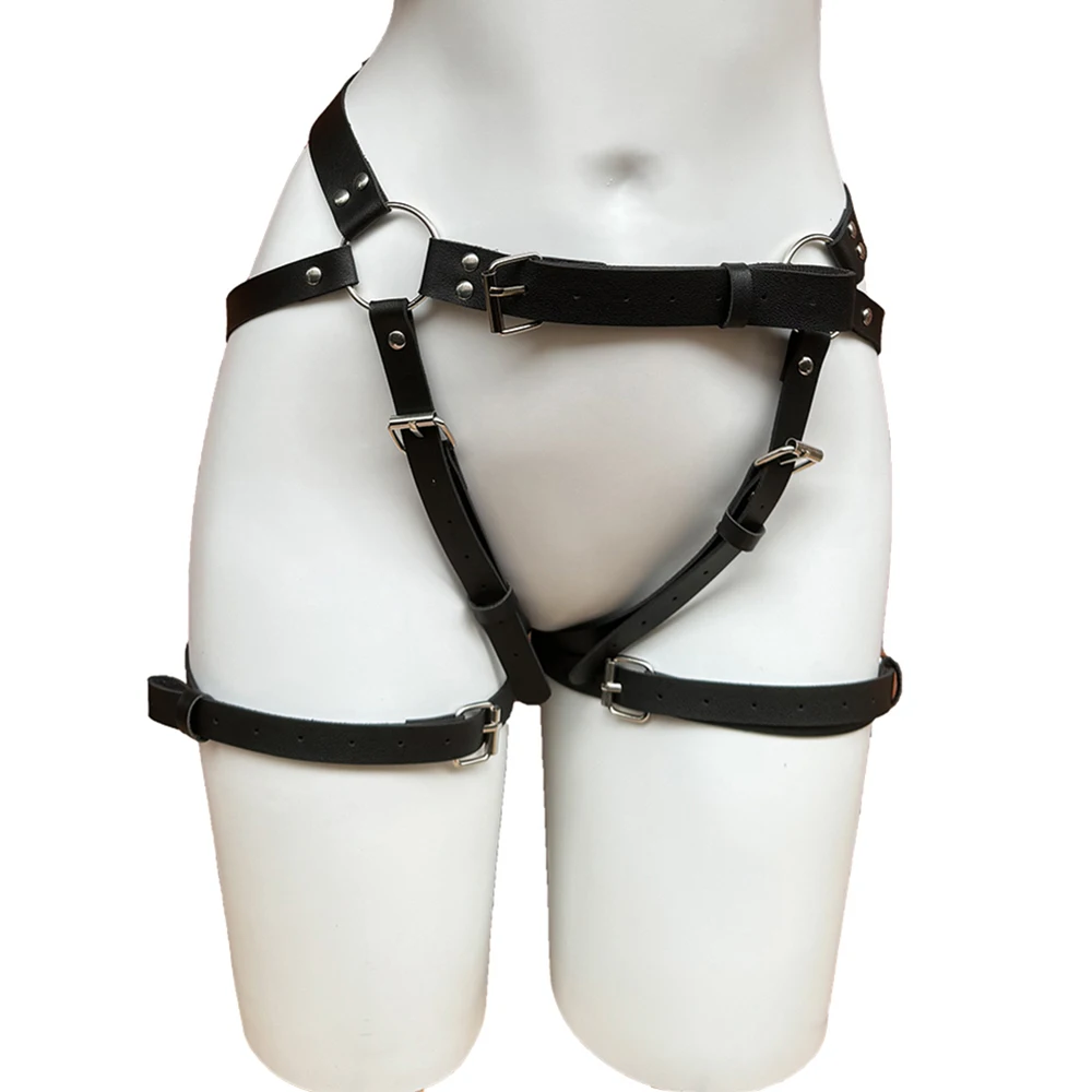 Porte-jarretelles sexy, lingerie érotique femme, harnais de jambe en cuir PU, harnais de corps BDSM, vêtements gothiques, porte-jarretelles sans entrejambe