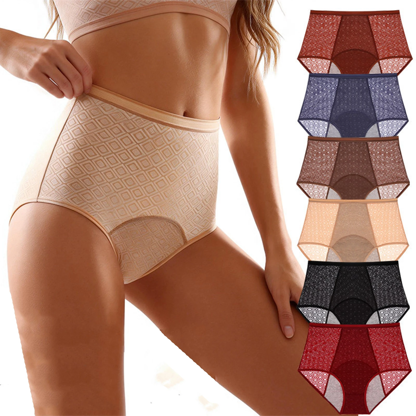 Culottes menstruelles respirantes et anti-fuites pour femmes, en jacquard, extensibles et confortables au quotidien.